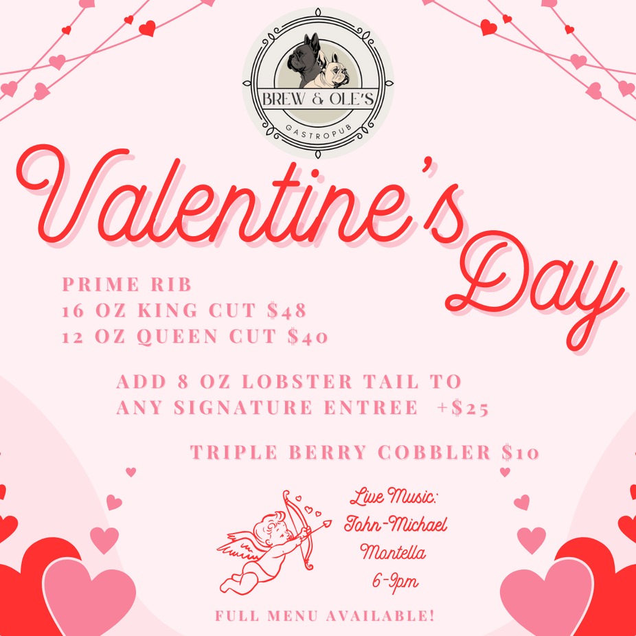Join us on Valentine's Day for the perfect romantic evening! Delicious specials, full menu available, and Live Music 6-9pm!